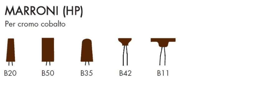 Laboratorio Marzo 8, 2021 1161Views 0Likes Abrasivi montati Laboratorio Marzo 8, 2021 1161Views 0Likes D395/D 1° passaggio colore grigio scuro – conf. da 6 punte forme: D1/2/4/5/6/7 D395/E 2° passaggio colore grigio chiaro – conf. da 6 punte forme E1/2 A390/R ROSA (HP) Per cromo cobalto – leghe – ceramica P43, P20, P42, P10, P11, P50 A390/GR VERDI (HP) Per oro – ceramica GR44, GR43, GR21, GR20, GR36, GR35, GR11, GR10, GR28 A390/B MARRONI (HP) per cromo cobalto B20, B50, B35, B42, B11 A390/B BIANCHE (HP) Per rifinitura leghe – ceramica W43, W20, W28, W50 Visualizza la scheda tecnica Laboratorio Marzo 8, 2021 1161Views 0Likes Share: