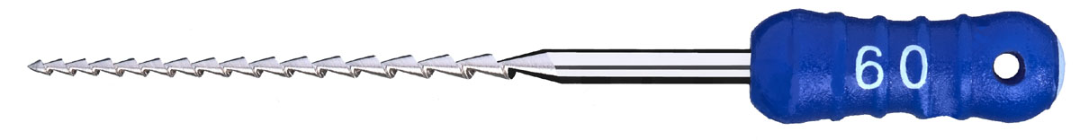 Strumento lavorato in un unico blocco, ad alta efficienza di taglio utilizzato per la preparazione endocanalare. Strumento Hedstroem ad alta efficienza di taglio, l’angolo della spirale più ampio permette un’eccellente pulizia del canale.